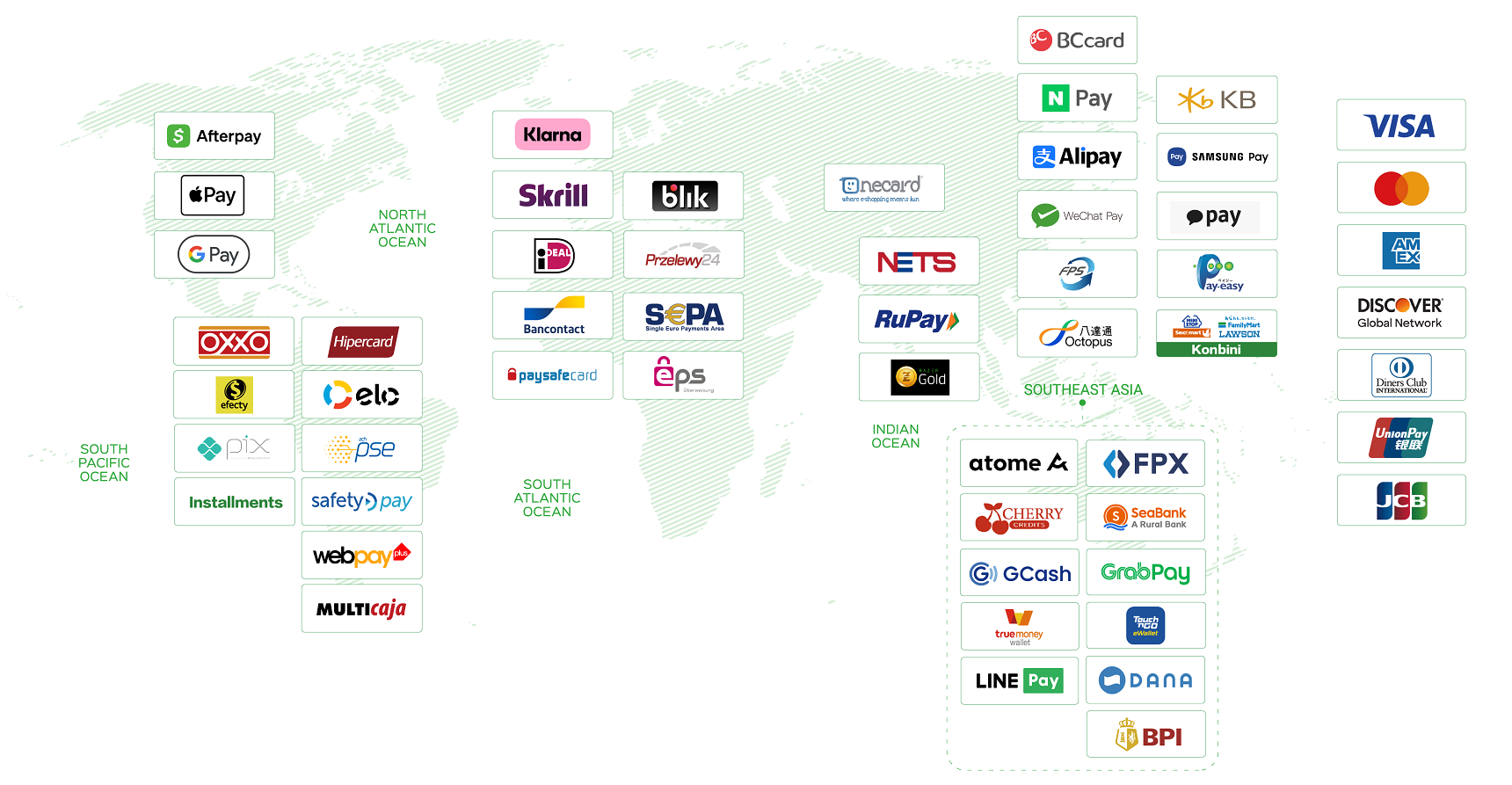 | 东亚 | Japan Alternative Payment Methods | Cash Payment,Bank Transfer,Offline Banking | Konbini | 日本 | 是 | 不支持 |