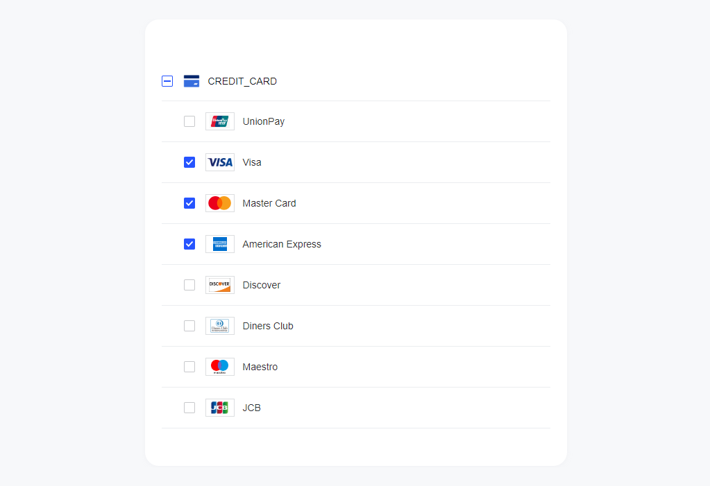 - Select the supported card types' logos; you don't need to select card types you haven't applied for.