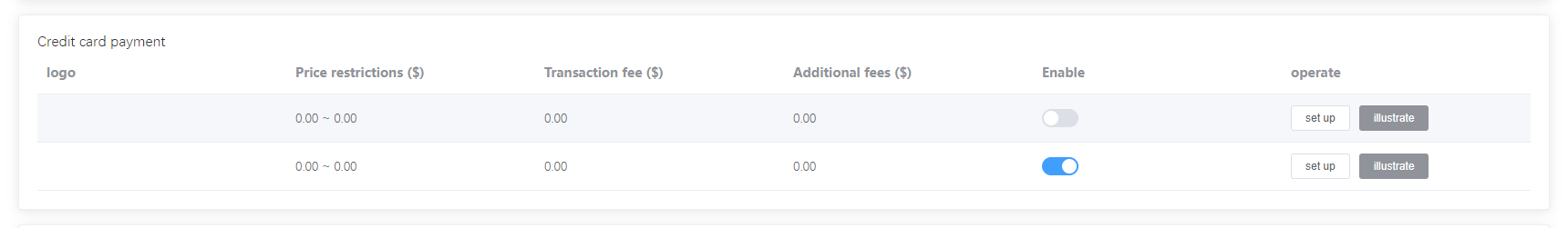 - Find the Credit Card payment method and click Turn off or Turn on.