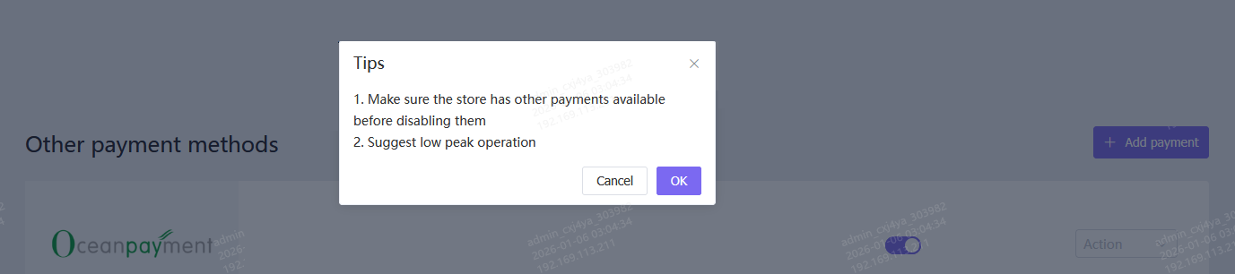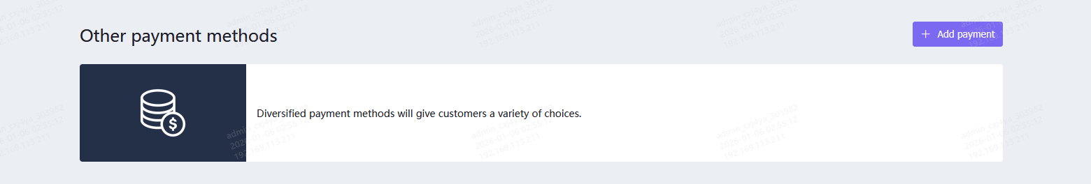 - Log in to the Shopyy store backend (https://account.shopyy.com), go to Store Settings - Payment Settings - Other Payment Methods - select Oceanpayment (credit card), and click Bind Account.