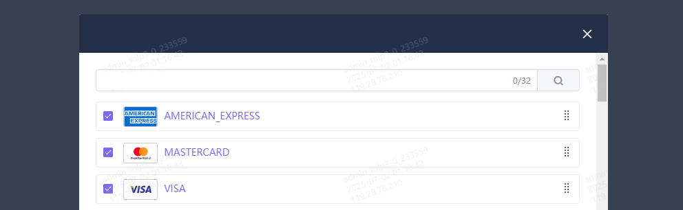 - Select the supported card types' logos. Do not select card types you have not applied for.