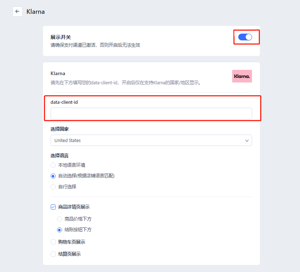 data-client-idvalue (provided by Oceanpayment), select the country and language, and save.