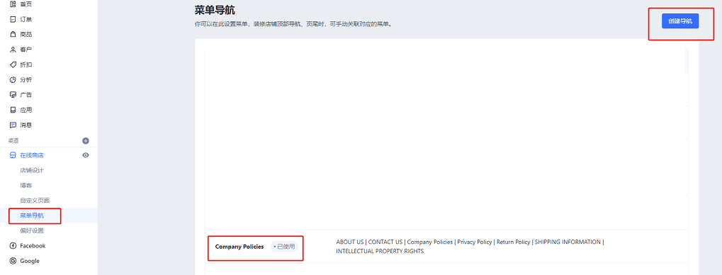 - In the store's backend menu, under 【Online Store】-【Custom Page】, create a